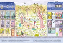 J'ai tout d'abord un coup de cœur pour les illustrations. Nous sommes sur une vue qui se répète de page en page mais qui montre l'évolution du quartier et de ses saisons. Avant même de lire le texte, je regardais la double page d'illustration, les détails.. les personnages... Et puis je me penchais sur le texte, très accessible pour les enfants et qui donnait envie de se replonger dans les illustrations pour en retrouver les détails. C'est un texte qui met la nature au centre de la ville, qui montre qu'un simple espace vert peut souder et regrouper des habitants. Cela montre que nos gestes petits ou grands peuvent changer les choses, changer le monde. Ce livre sensibilise les enfants à la beauté de la nature, à sa richesse. J'ai hâte de le faire découvrir à mes enfants, et je vous avoue qu'il y a une forte probabilité pour que je le lise régulièrement, pour la beauté du texte et de ses illustrations.