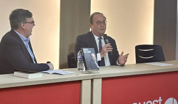 François Hollande à la rencontre de son public à l'espace Ouest France de Rennes.