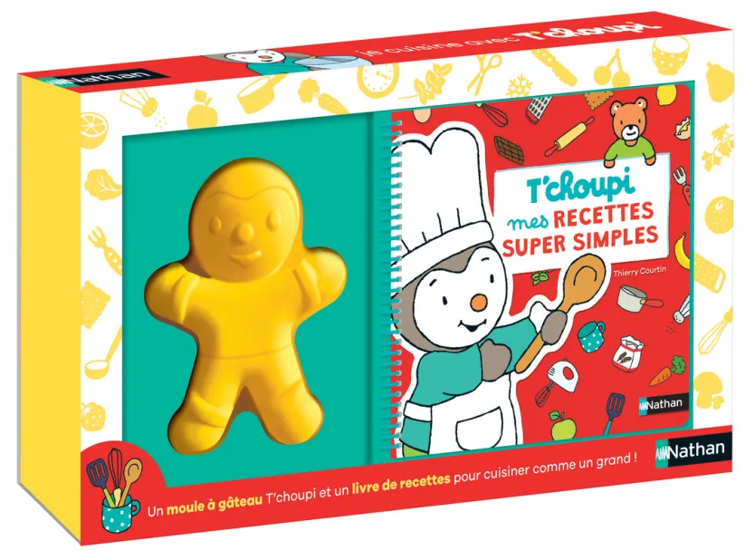 Le livre inclut une recette inédite de gâteau au chocolat et comprend le moule à la forme de T'choupi pour réaliser cette recette !