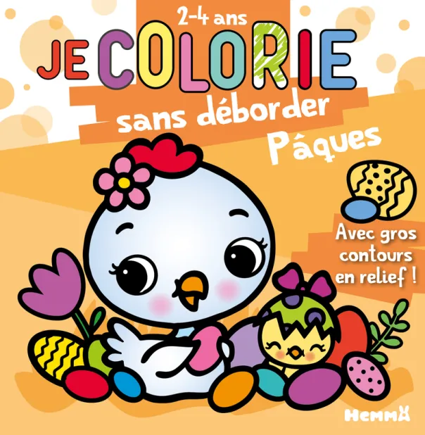 Un nouveau titre spécial Pâques dans cette collection appréciée des plus jeunes. Grâce aux contours pailletés en relief, les tout-petits vont aimer colorier des lapins, des poules et des œufs colorés.