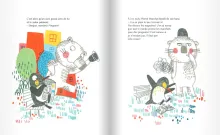 Pierrot Manchot lisait le journal dans un parc, quand un ours passa près de lui et le salua poliment :