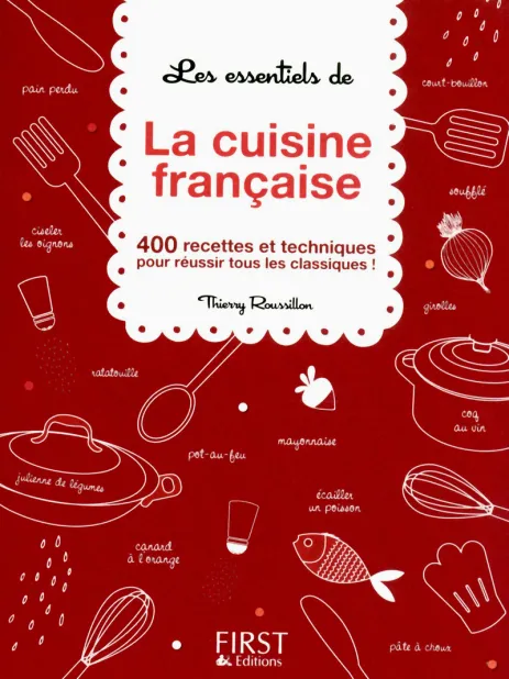 Découvrez les recettes de sauces, bouillons et soupes, entrées, viandes, poissons et desserts incontournables de la cuisine française : sauce béchamel, mayonnaise, velouté de potiron, quiche lorraine, œufs Benedict, moule marinière, truite aux amandes, gigot de 7 heures, canard à l'orange, ratatouille, aligot, poire belle-Hélène, charlotte, tatin de pommes... L'essentiel est là !