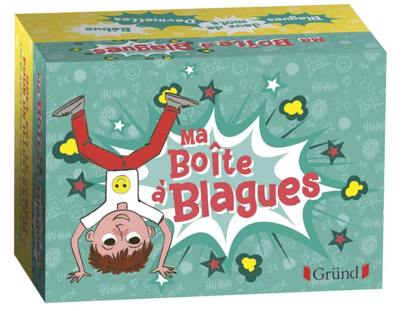 Dans ta boîte, tu trouveras 130 cartes avec des blagues, des jeux de mots, des devinettes, des rébus... Fous rires 100 % garantis !