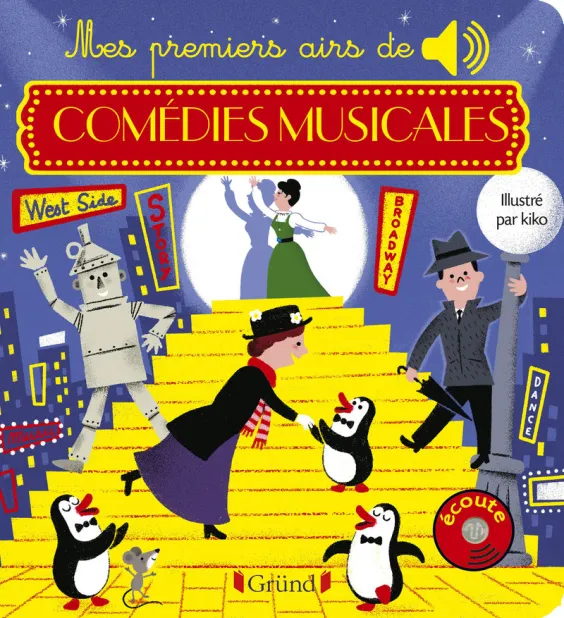 Ce sont les intemporels de comédies musicales américaines que l'on retrouve au fil des pages : " Singin'in in the rain " ; Le Magicien d'Oz ; " An American in Paris " ; " West Side Story " ; " Mary Poppins " mais aussi " My Fair Lady ". Une sélection des plus belles comédies illustrées avec humour par Kiko.