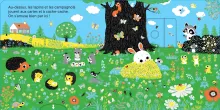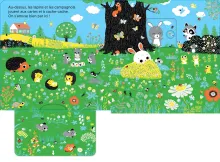 Si vous aimez la littérature jeunesse, je suis certaine que vous connaissez l’illustratrice japonaise Emiri Hayashi. Elle a illustré de très nombreux albums et on reconnaît immédiatement son univers coloré et ses personnages tout en rondeurs. Promenade dans l’arbre s’adresse aux tout-petits, à partir de 6 mois. Le format carré est idéal, ni trop petit ni trop grand, il peut être emporté partout. Il s’agit d’un album à tirettes où on peut déplacer et faire coulisser des éléments du décor. Dans ce titre, nous explorons un arbre majestueux et découvrons les insectes et animaux qui l’habitent. Il y a la vie souterraine, ceux qui escaladent le tronc, le hibou qui se niche, les oiseaux dans les branches… Les décors sont ultra colorés et attirent immédiatement l’attention. Les détails sont en reliefs grâce à des nervures argentées et des éléments métallisés. Un univers doux et chatoyant, succès garanti chez les bébés !