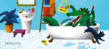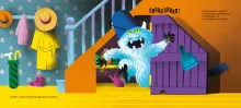 Tout est calme dans la maison, mais allons l'explorer de plus près... Dans le salon, on dirait bien que le rideau a bougé. Mon dieu, un loup se cache derrière, au secours ! Et dans la chambre qui semble si tranquille, un squelette est caché sous le lit ! Dans la penderie une sorcière, au grenier un fantôme, à la cave des vampires et dans le cagibi un yéti. Ça y est, tous les monstres ont été trouvés ; il est l'heure de rassembler tous les enfants déguisés pour le goûter d'anniversaire de petit squelette. Mais ne reste-t-il pas un derrière monstre caché dans un coin...